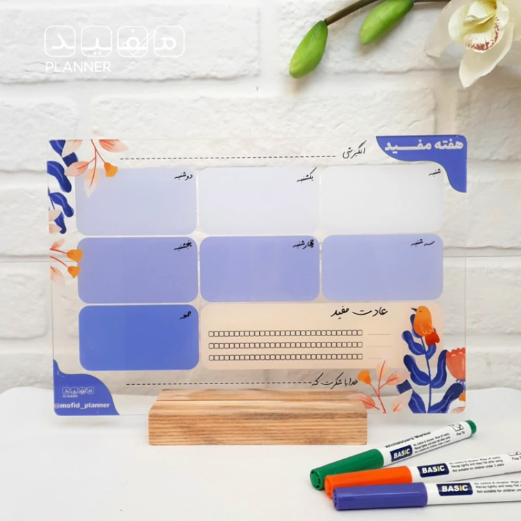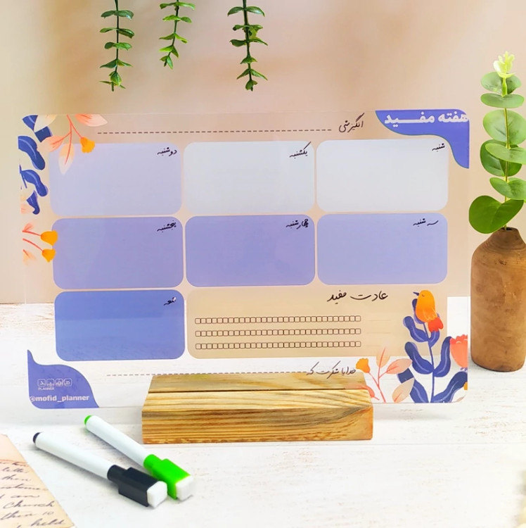 پلنر هفتگی(تابلو برنامه ریزی پلکسی) 20*30 رومیزی طرح یاسی برند مفید