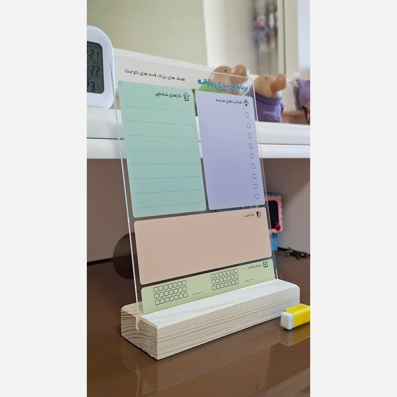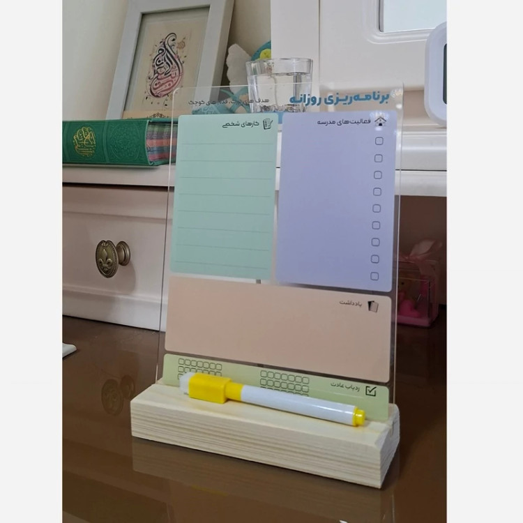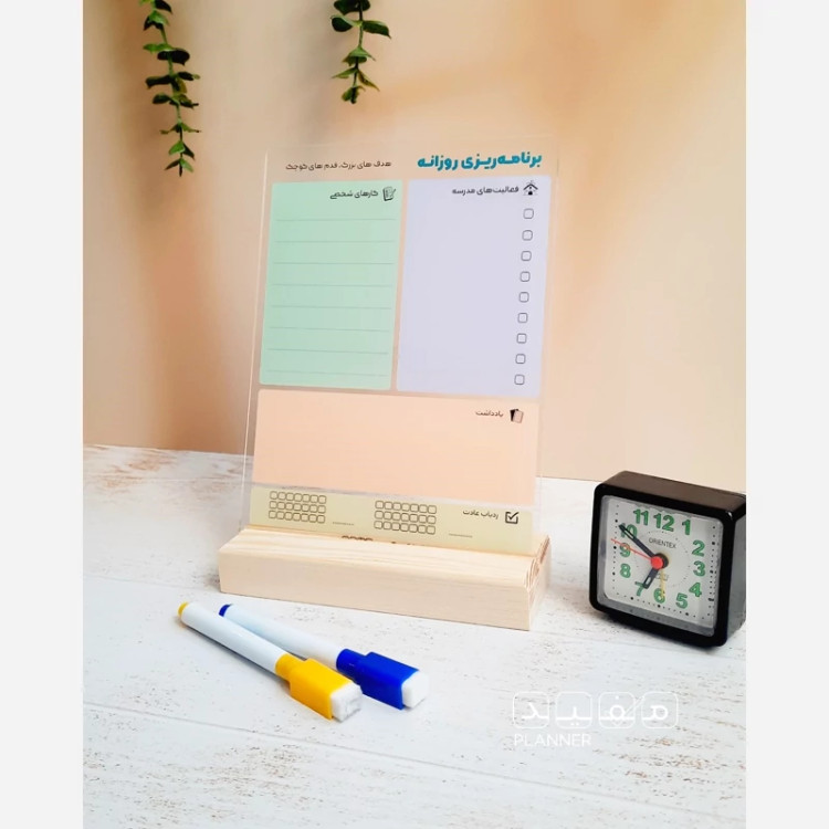 🔸تودولیست دانش آموز 💡محصولی برای آینده سازان ایران سربلندمون🇮🇷 🔸این تودولیست بهترین محصول برنامه ریزی برای دانش اموزای عزیزه هم باعث میشه برنامه ریزی رو یاد بگیرن و هم بچه هارو به انجام کارها و تیک زدنشون تشویق میکنه✅ سایز تابلو 20×15 هست و به همراه ماژیک، پایه و 《یا》 مگنت تقدیمتون میشه. (برای سفارش عمده همراه با طراحی اختصاصی هم میتونین بهمون پیام بدین)