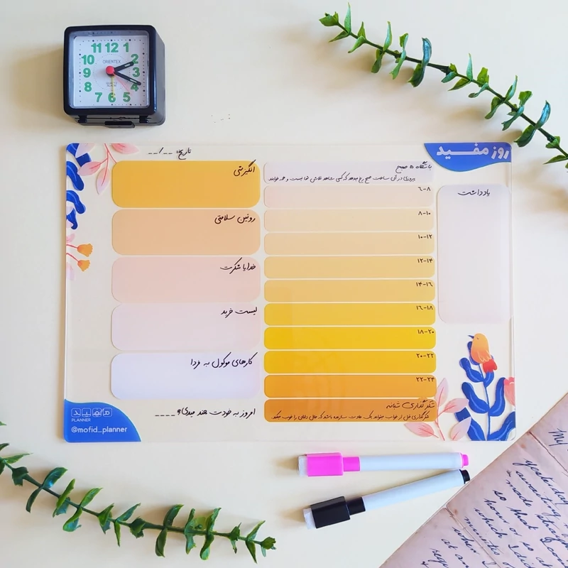 پلنر روزانه(تابلو برنامه ریزی پلکسی) رومیزی 30*20 +ماژیک