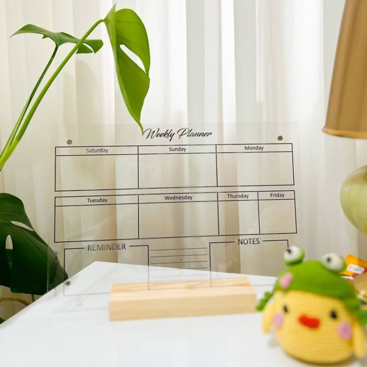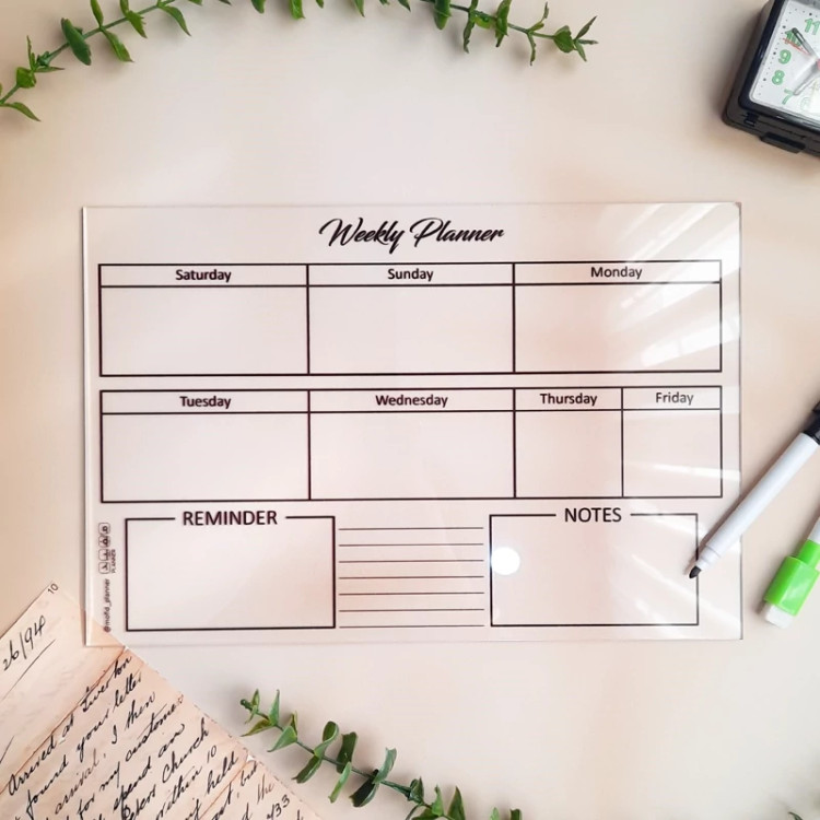 تابلوی برنامه ریزی از جنس پلکسی مناسب برای برنامه ریزی هفتگی، نوشتن یادداشت و یادآور کارها. با ماژیک وایت برد برنامه هاتون رو یادداشت کنید و جلوی چشم بذارید تا هیچ کاری از قلم نیفته. پلنر بصورت مگنتی(با 4عدد مگنت ابکاری شده) یا رومیزی(با استند چوب روسی) قابل سفارشه. ✨یک عدد ماژیک مگنتی هم هدیه ی ما به شما✨