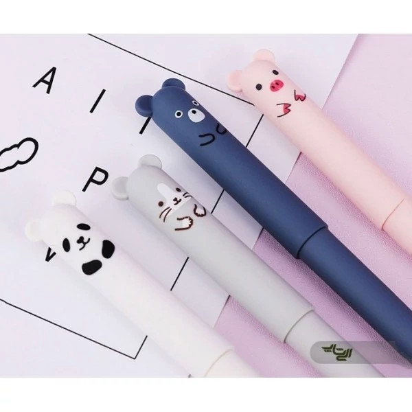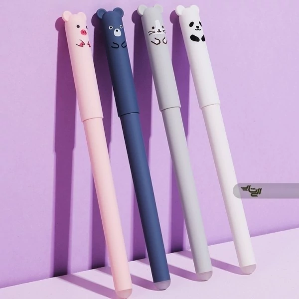 خودکار پاکندار حیوانات بامزه طرح (خرس، پاندا، خوک و موش) *جوهر تمام مدلها آبی* انتهای این خودکارهای گوگولی یک پاکن هست که جوهر اون خودکار رو میتونه از روی کاغذ پاک کنه. جنس بدنه خیلی لطیفی داره و وزنش هم بسیار سبک هست. ضخامت نوک قلم مناسب هست و جوهرش هم روان مینویسه.