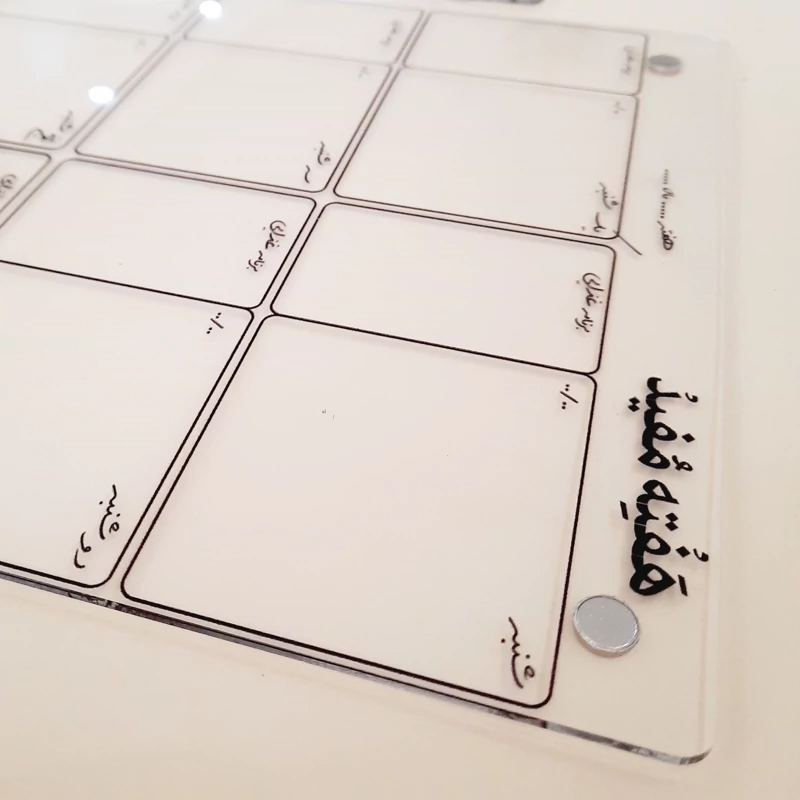 مناسب برای برنامه ریزی هفتگی و نوشتن لیست وعده های غذایی کل هفته 🎀به همراه 1عدد ماژیک وایت برد پاکن دار هدیه سفارش شما🎀 جنس: پلکسی اکرلیک درجه یک ابعاد پلنر : 30×20 ✅️مگنتها از بهترین نوع مگنت آبکاری شده هست و هیچ گونه خط و خش به یخچال وارد نمیکند.